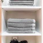 This apartment is equipped with a bathroom that features a hairdryer and towels. A separate toilet, a shower, and a washing machine can also be found.